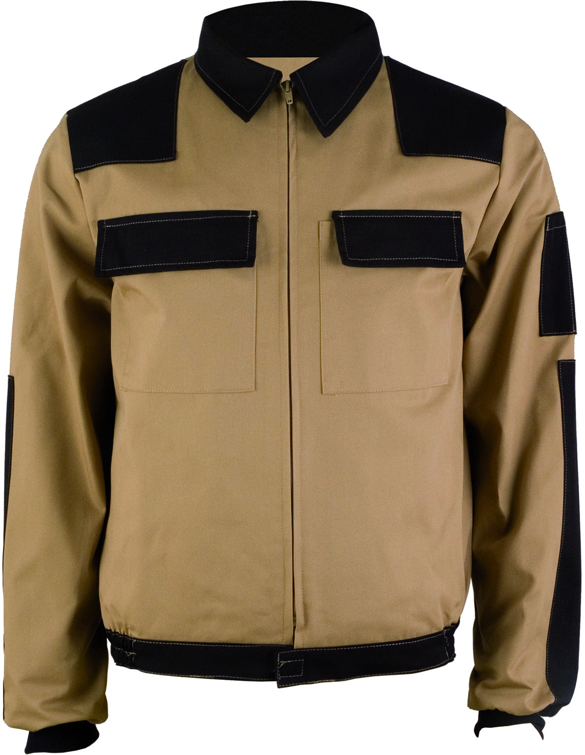 Cazadora cuello solapa, dos bolsillos superiores con tapeta, bolsillo manga derecha, refuerzo hombreras-coderas y puño elástico.